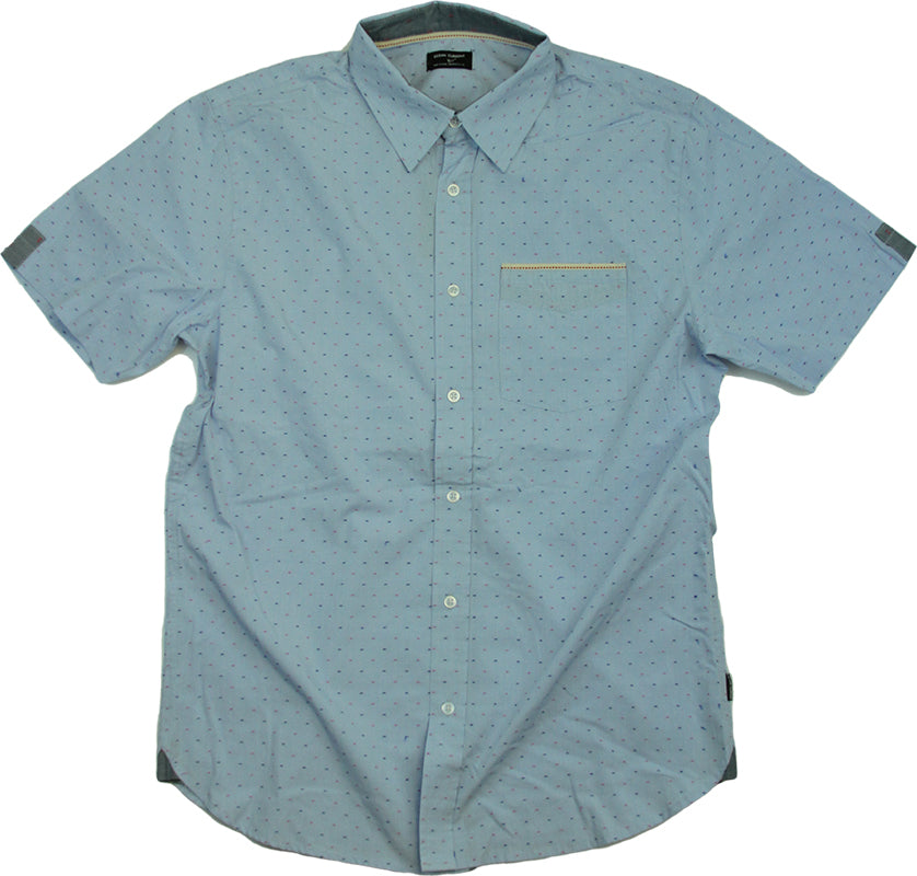 SS clip jacquard in indigo color with red pops. Front pocket and inside neck contrast. 100%cotton.